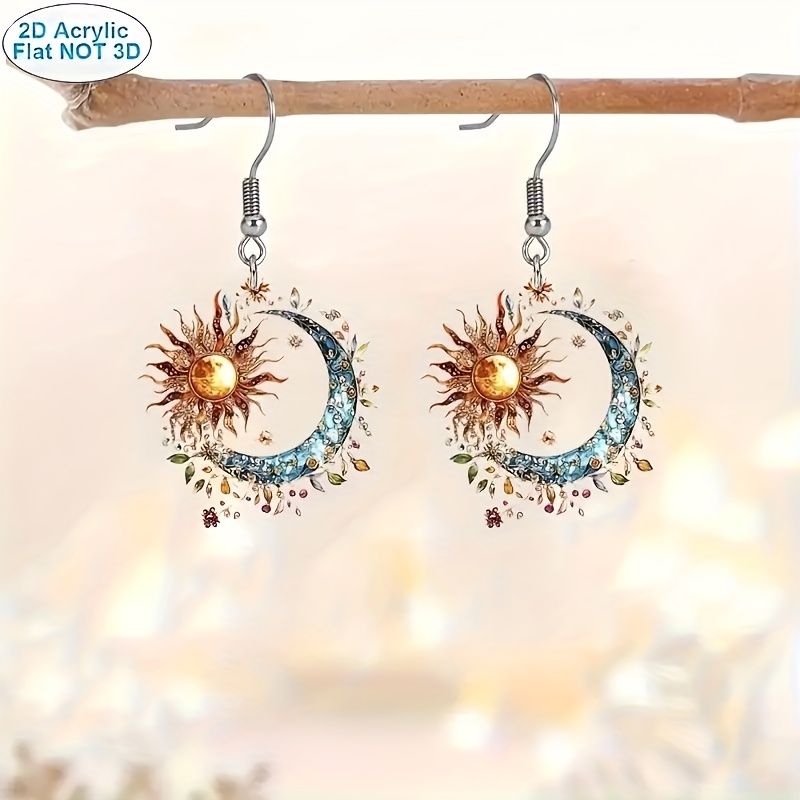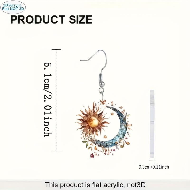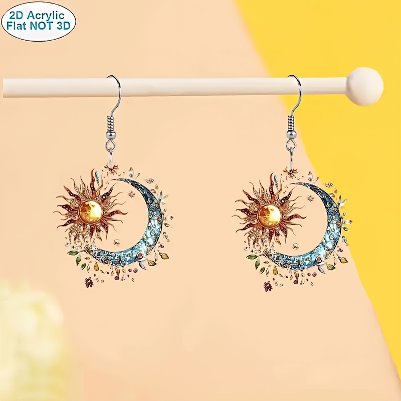 Pair Bohemian Sun and Moon Pendant Earrings 2D Flat